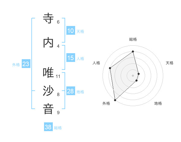 寺内 唯沙音さんの外格は23画の5点!