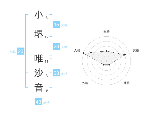 小堺 唯沙音さんを姓名の画数から五運を鑑定