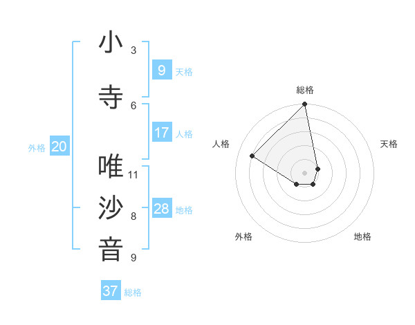 小寺 唯沙音さんを姓名の画数から五運を鑑定