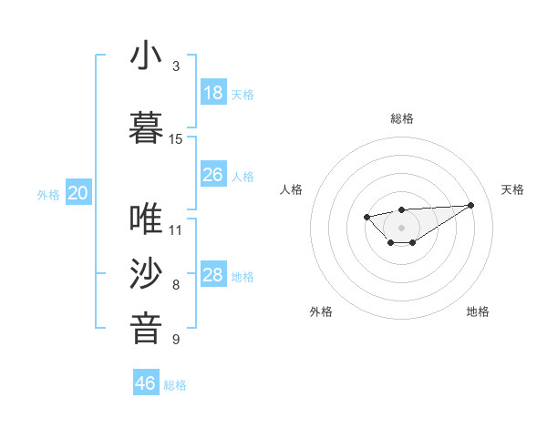 小暮 唯沙音さんの天格は18画の4点!
