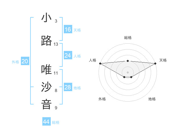 小路 唯沙音さんを姓名の画数から五運を鑑定
