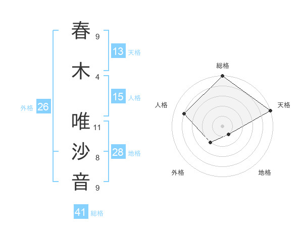 春木 唯沙音さんの天格は13画の5点!