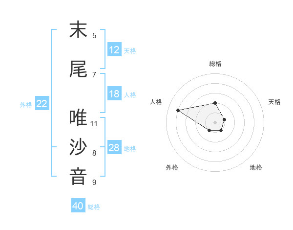 末尾 唯沙音さんを姓名の画数から五運を鑑定