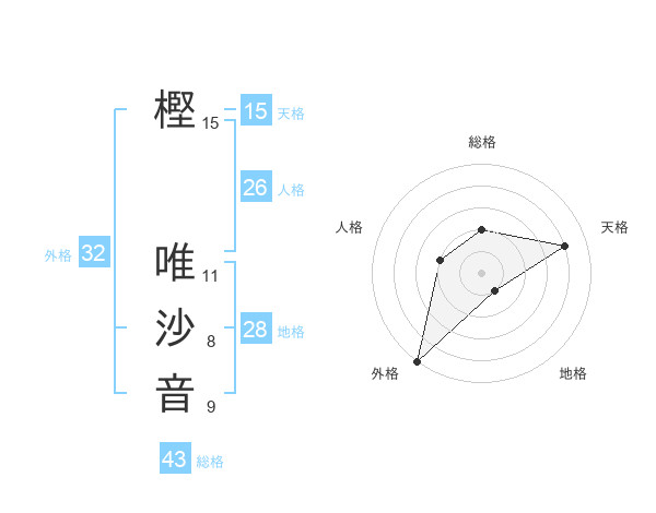 樫 唯沙音さんを姓名の画数から五運を鑑定