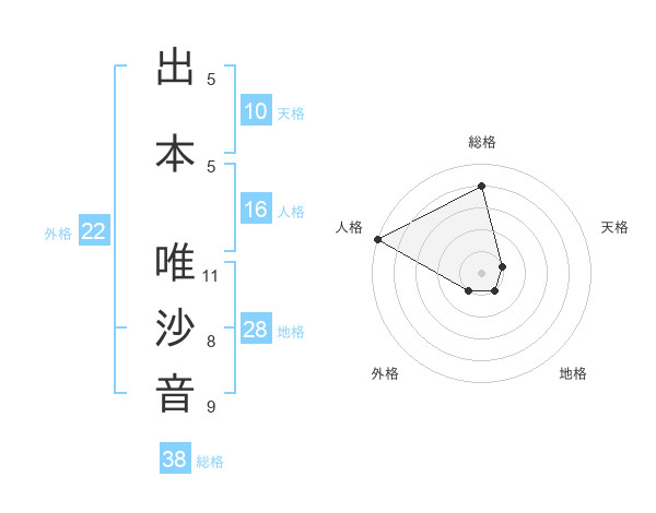 出本 唯沙音さんの外格は22画の1点!