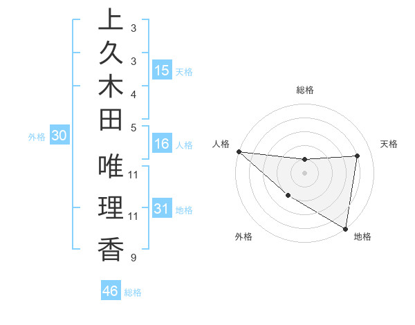 上久木田 唯理香さんを姓名の画数から五運を鑑定
