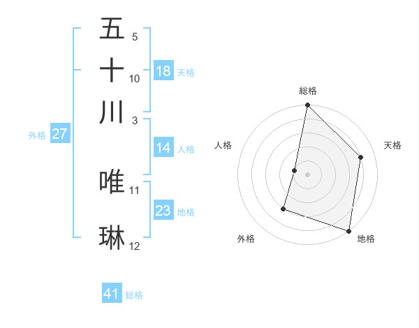 五十川 唯琳さんを姓名の画数から五運を鑑定