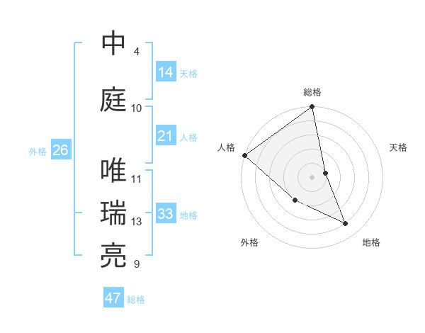 中庭 唯瑞亮さんの総格は47画の5点!