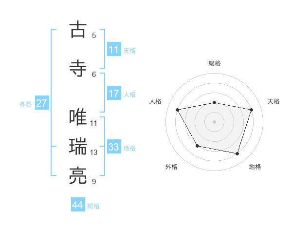 古寺 唯瑞亮さんを姓名の画数から五運を鑑定