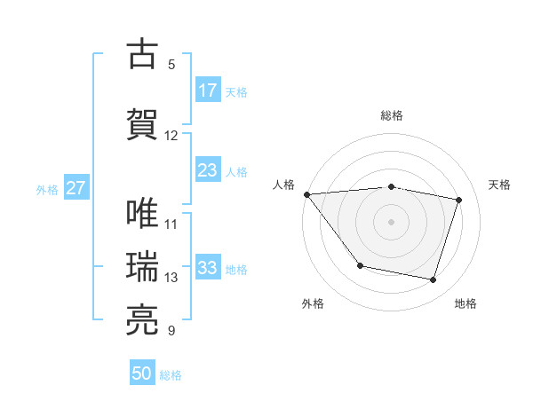 古賀 唯瑞亮さんの総格は50画の2点!