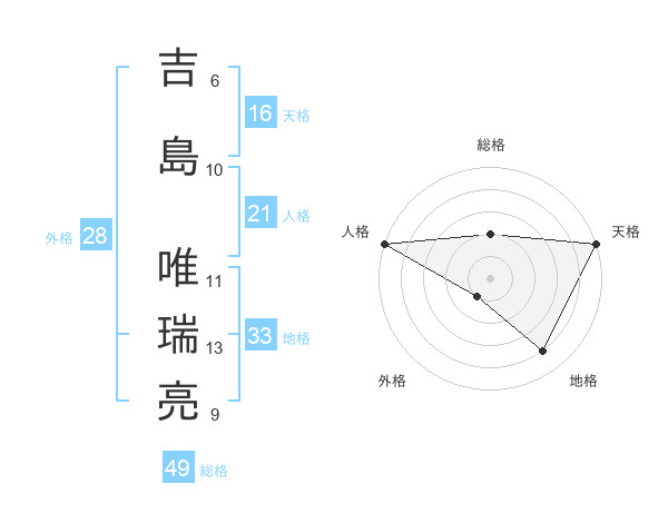 吉島 唯瑞亮さんを姓名の画数から五運を鑑定