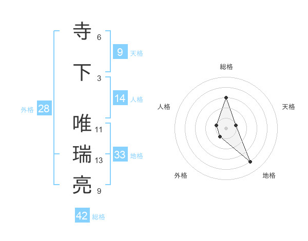 寺下 唯瑞亮さんを姓名の画数から五運を鑑定