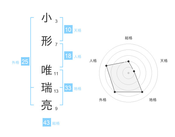 小形 唯瑞亮さんの総格は43画の2点!