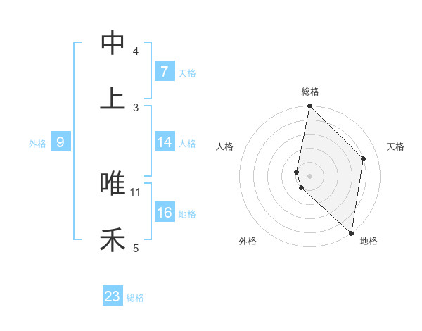 中上 唯禾さんを姓名の画数から五運を鑑定