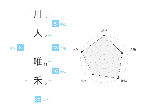 川人 唯禾さんを姓名の画数から五運を鑑定