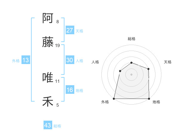 阿藤 唯禾さんの天格は27画の3点!