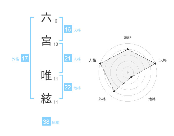 六宮 唯絃さんの天格は16画の5点!