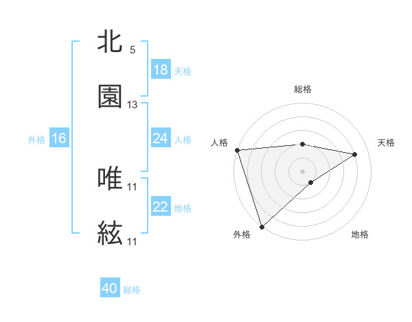 北園 唯絃さんを姓名の画数から五運を鑑定