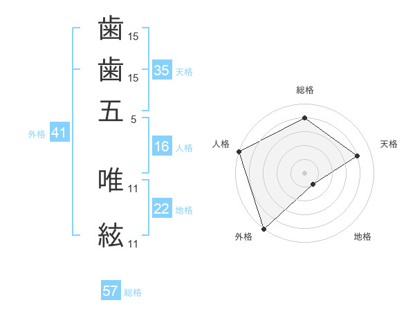 歯歯五 唯絃さんを姓名の画数から五運を鑑定