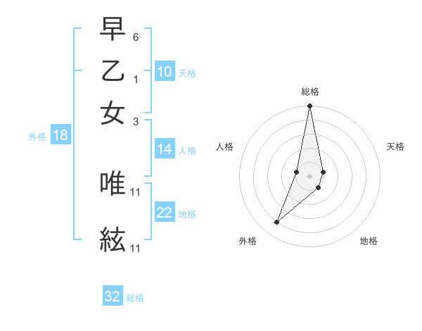 早乙女 唯絃さんの総格は32画の5点!
