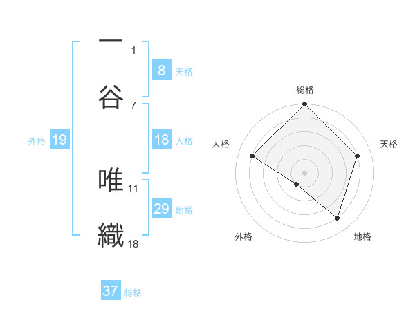 一谷 唯織さんの総格は37画の5点!