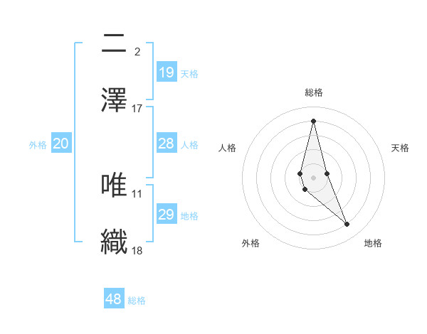 二澤 唯織さんを姓名の画数から五運を鑑定