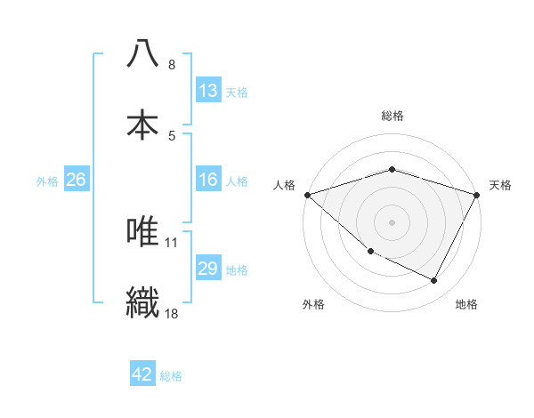 八本 唯織さんの総格は42画の3点!