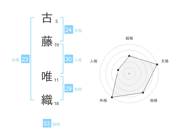 古藤 唯織さんを姓名の画数から五運を鑑定