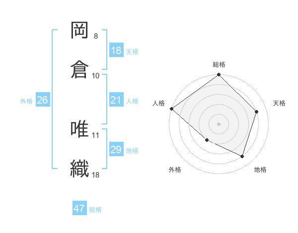 岡倉 唯織さんの総格は47画の5点!