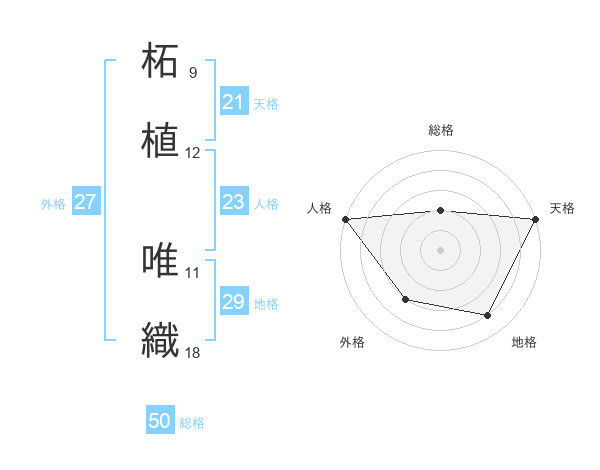柘植 唯織さんを姓名の画数から五運を鑑定