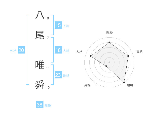 八尾 唯舜さんの外格は20画の1点!