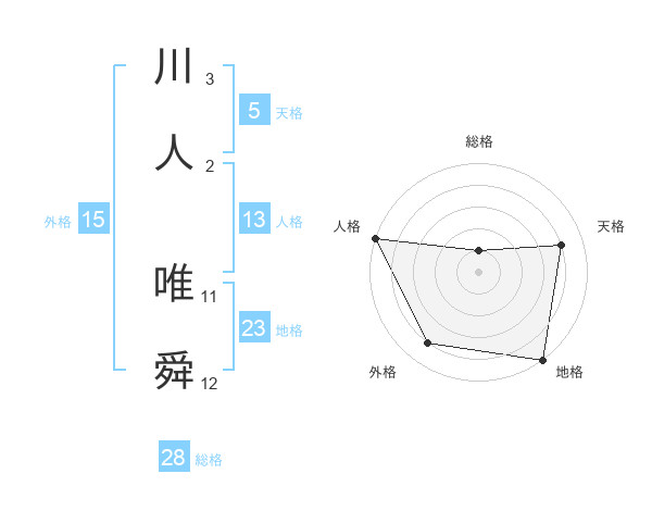 川人 唯舜さんの総格は28画の1点!