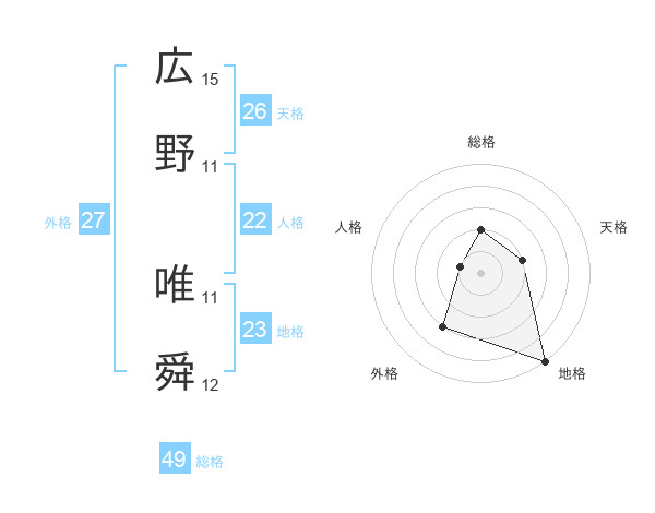 広野 唯舜さんを姓名の画数から五運を鑑定