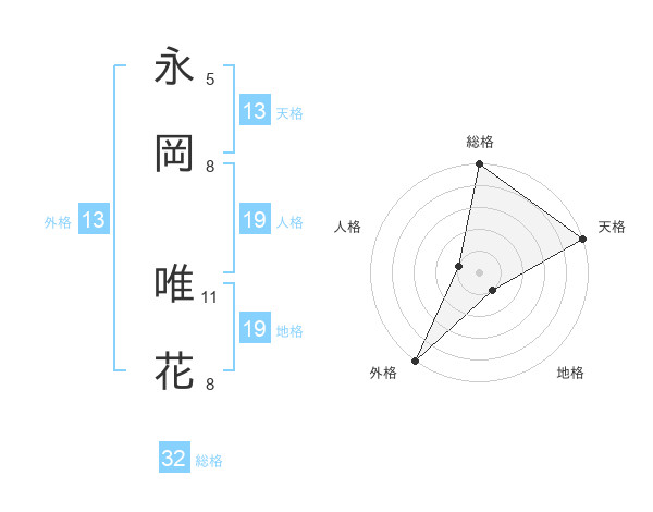 永岡 唯花さんを姓名の画数から五運を鑑定