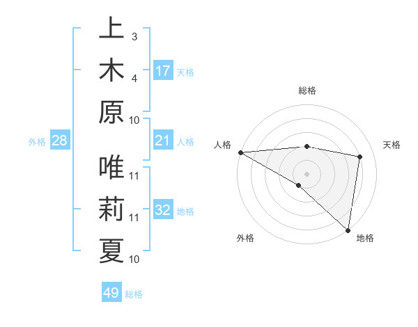 上木原 唯莉夏さんを姓名の画数から五運を鑑定