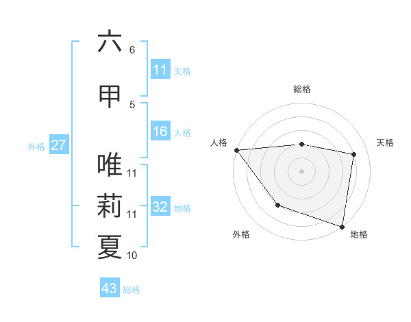 六甲 唯莉夏さんを姓名の画数から五運を鑑定