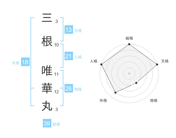 三根 唯華丸さんを姓名の画数から五運を鑑定