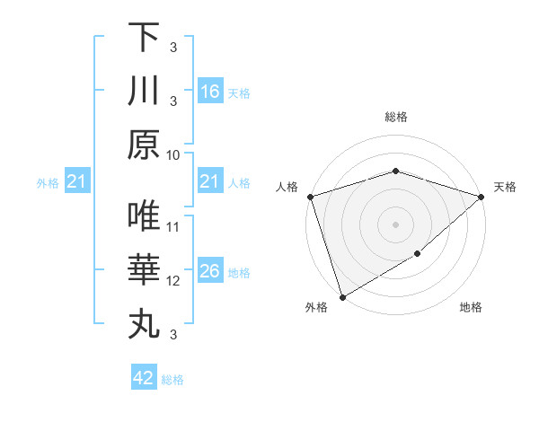 下川原 唯華丸さんの総格は42画の3点!