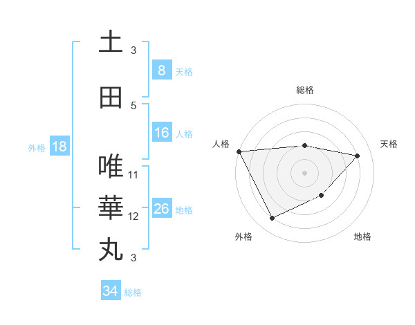 土田 唯華丸さんを姓名の画数から五運を鑑定