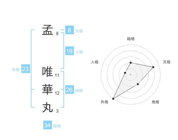 孟 唯華丸さんを姓名の画数から五運を鑑定
