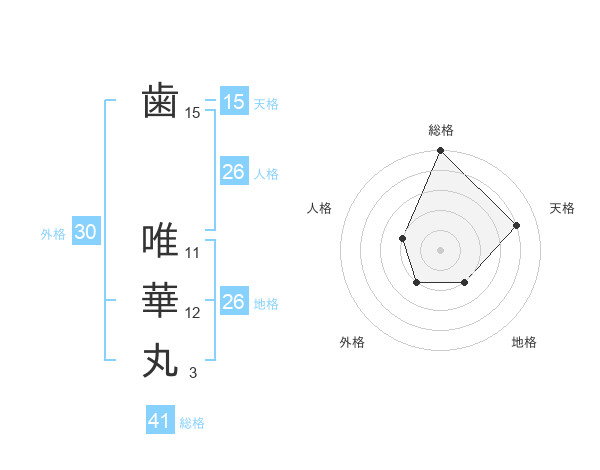 歯 唯華丸さんを姓名の画数から五運を鑑定