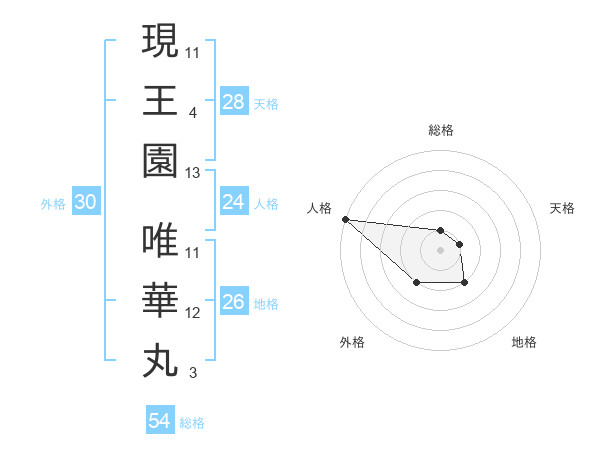 現王園 唯華丸さんを姓名の画数から五運を鑑定