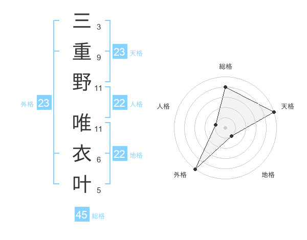 三重野 唯衣叶さんを姓名の画数から五運を鑑定
