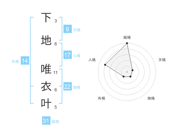 下地 唯衣叶さんを姓名の画数から五運を鑑定