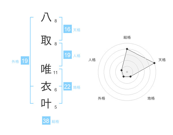 八取 唯衣叶さんの外格は19画の1点!
