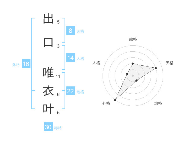 出口 唯衣叶さんの地格は22画の1点!