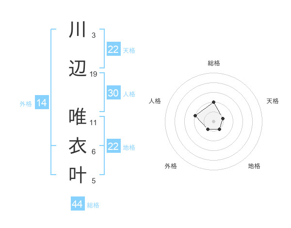 川辺 唯衣叶さんを姓名の画数から五運を鑑定