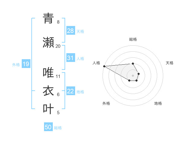 青瀬 唯衣叶さんを姓名の画数から五運を鑑定