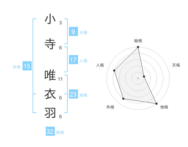 小寺 唯衣羽さんの総格は32画の5点!
