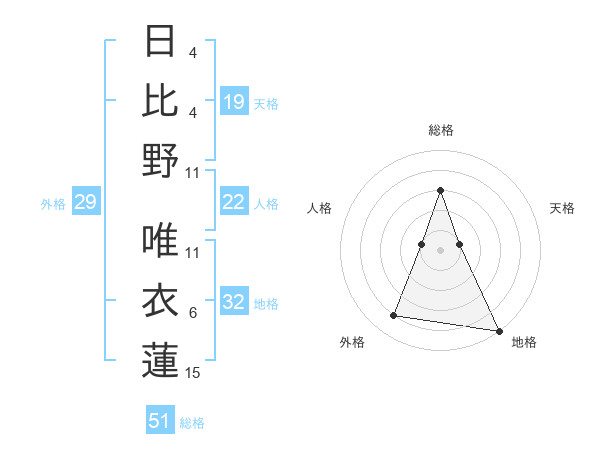 日比野 唯衣蓮さんを姓名の画数から五運を鑑定